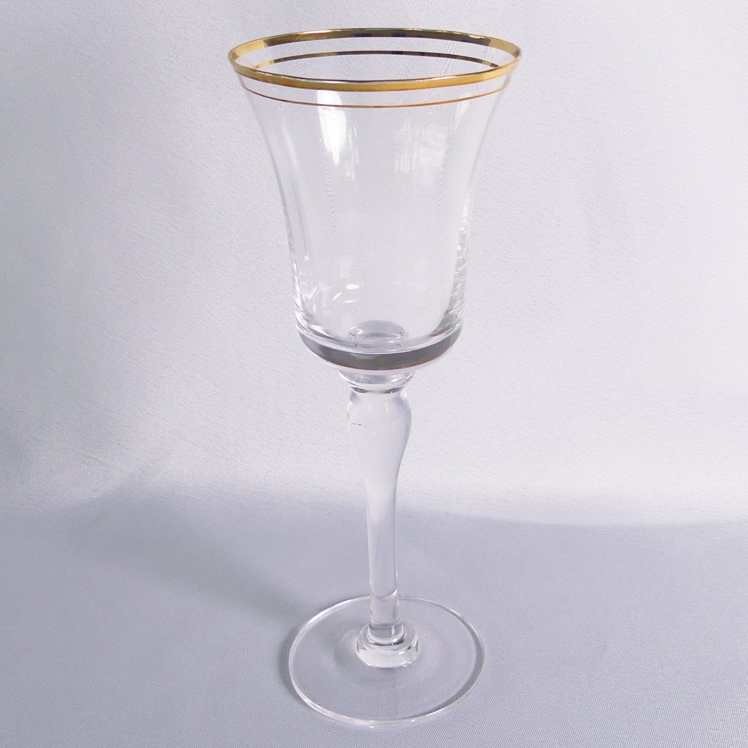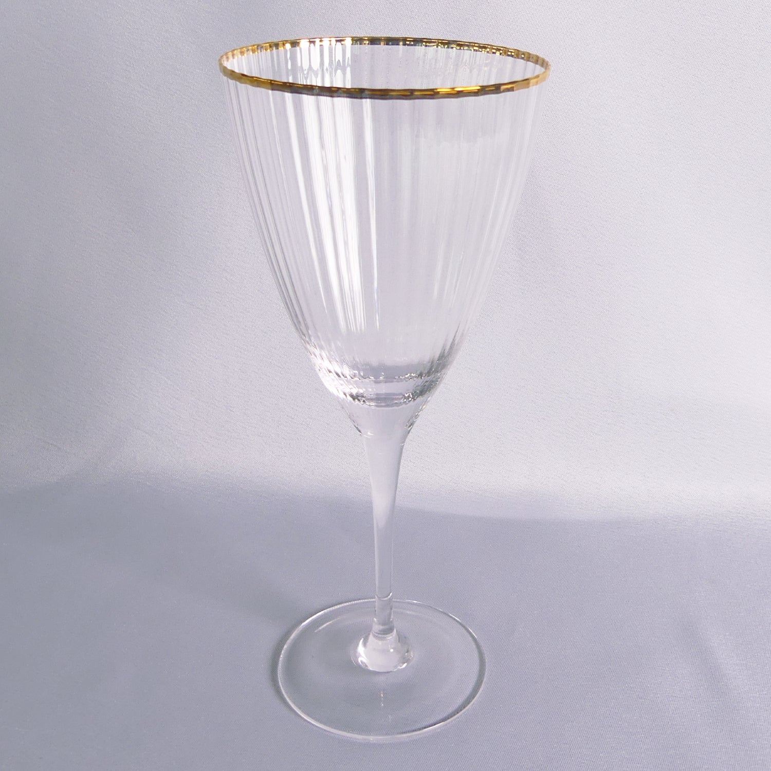 Your choice of either plain or gold rim stem glassware rented per piece: water goblet, wine glass, champagne glass, aperitif glass